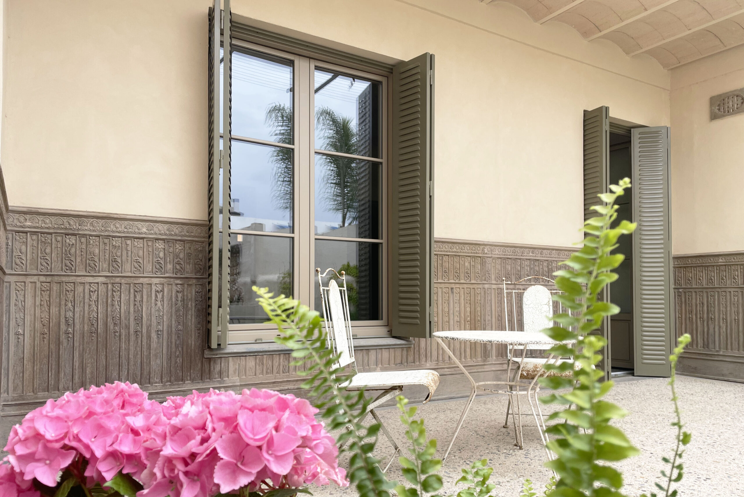 Alistonada de fusta i mallorquines mòbils lacades a l’exterior