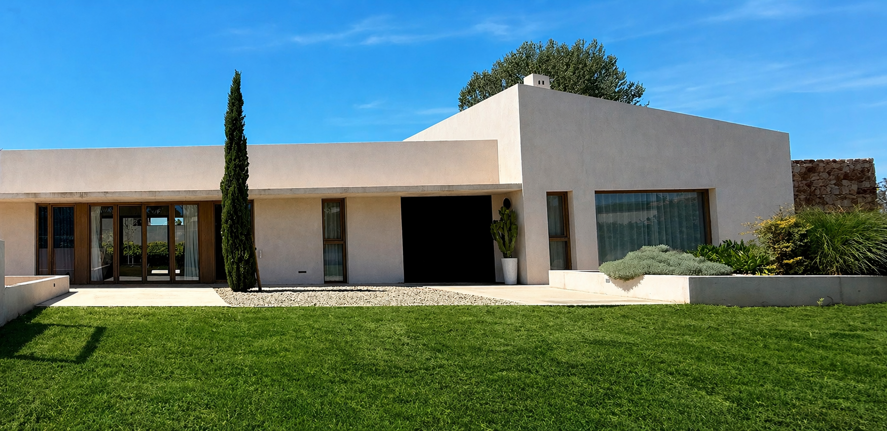 Una vivida de líneas sobrias, rectas y elegantes, atemporales frente a modas y tendencias, construida con materiales naturales y resistentes frente a las inclemencias del tiempo, y sobre todo, eficiente energéticamente y sostenible, manteniendo una perfecta armonía con su entorno y paisaje natural.